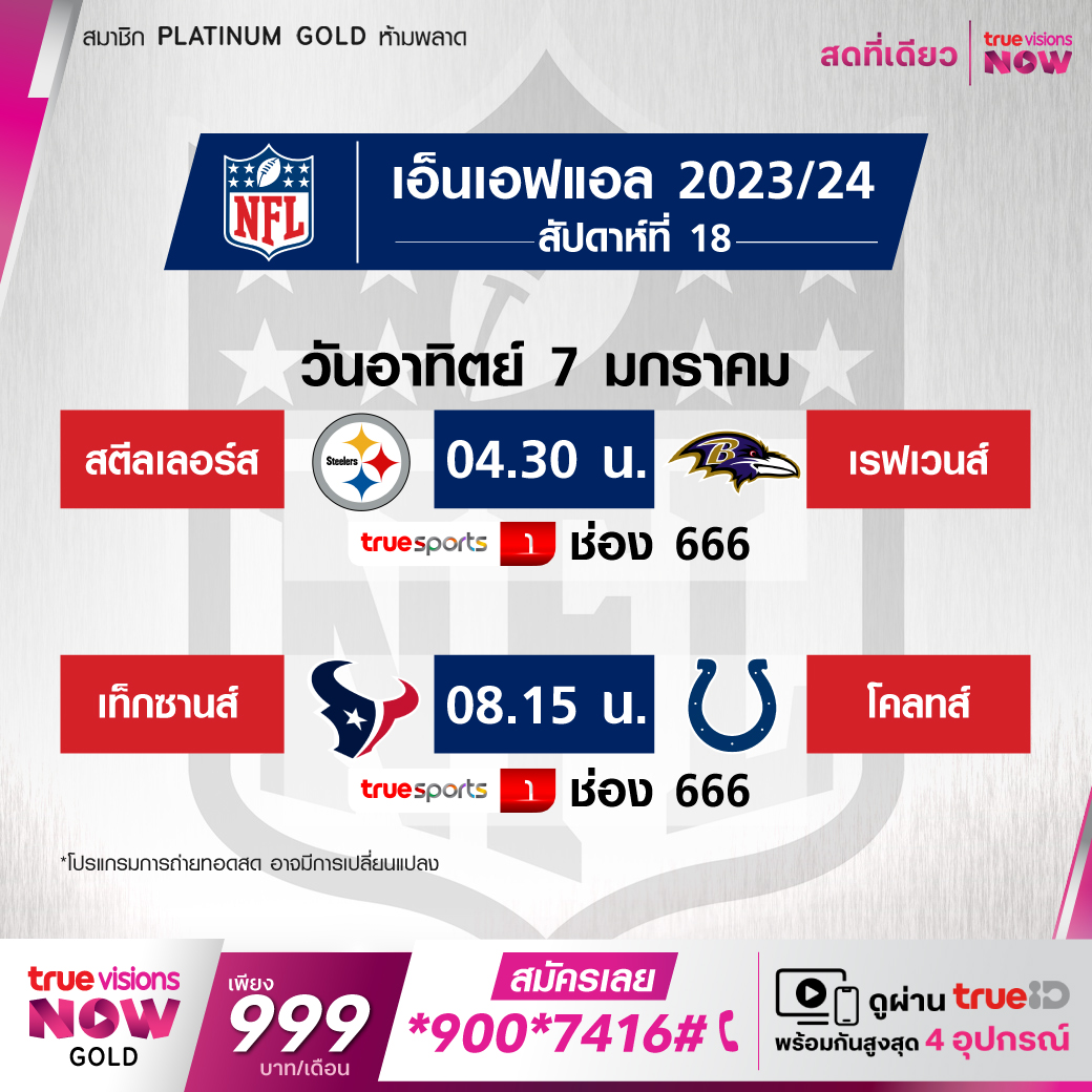 วันอาทิตย์ 7 ม.ค. Texans Vs Colts เวลา 08.15 ทางช่อง TS 1 (666)