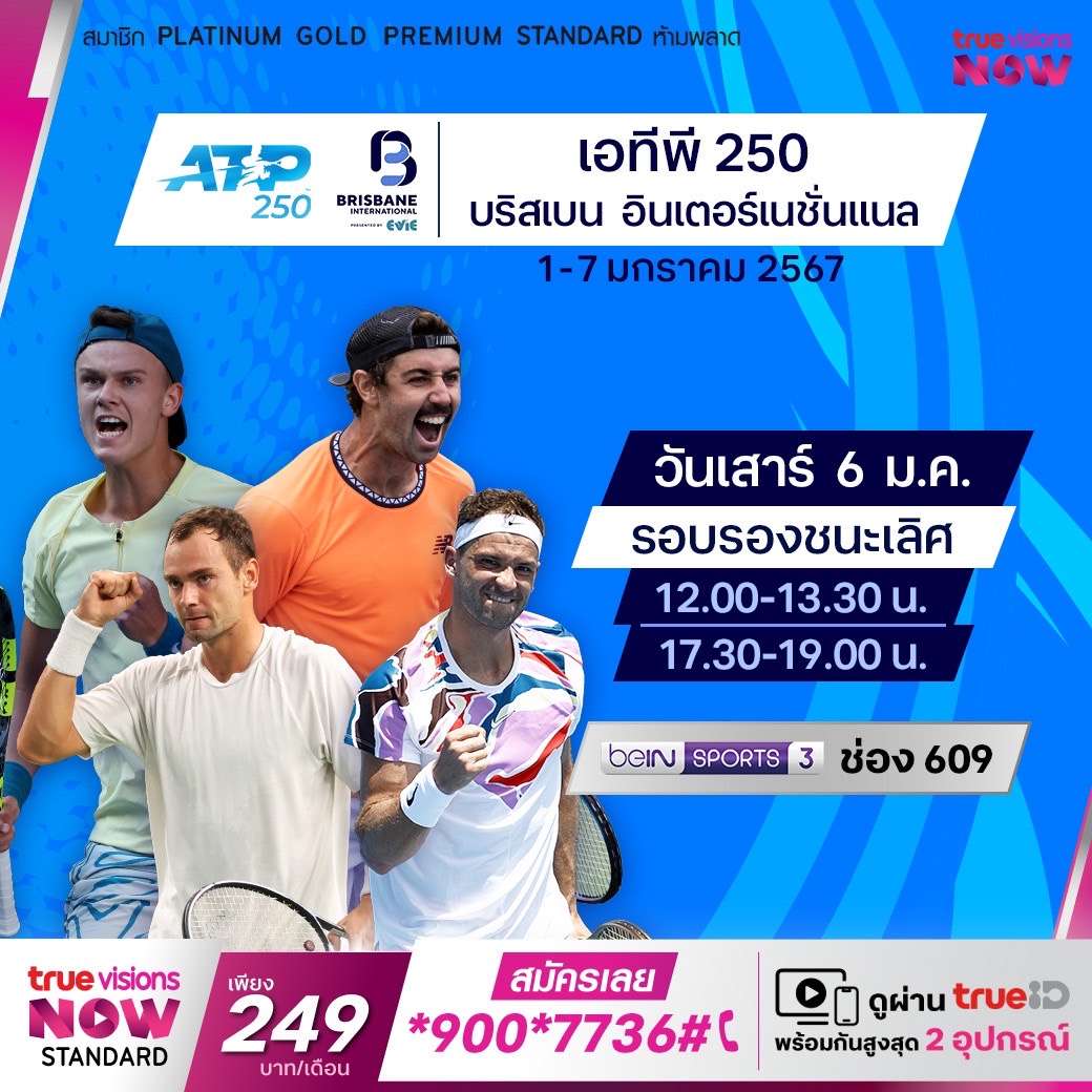 ติดตามชมการแข่งขันเทนนิสชาย เอทีพี ทัวร์ รายการแรกของฤดูกาล บริสเบน อินเตอร์แนชั่นแนล มาร่วมลุ้นว่าใครจะคว้าแชมป์รายการแรกของปีไปครอง