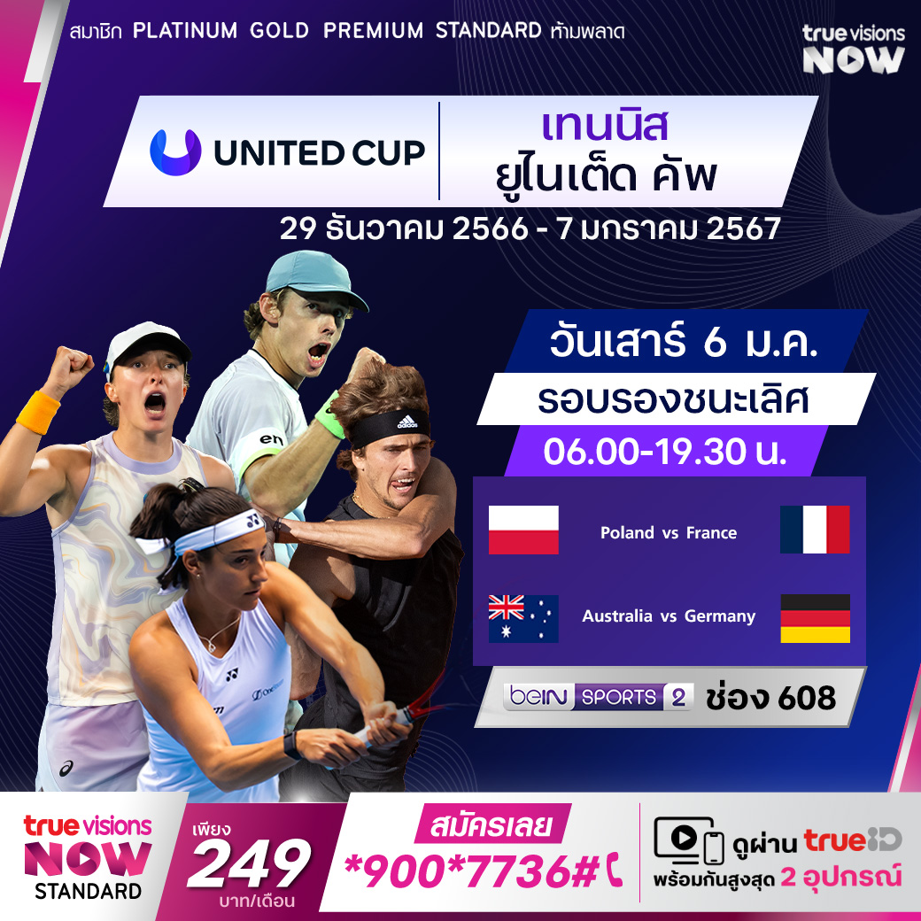 เทนนิสพิเศษ ยูไนเต็ด คัพ ที่เพิร์ท และซิดนีย์ ทีมผสม ชาย หญิง ร่วมลุ้นชาติไหนจะครองแชมป์ ถ่ายทอดสด ทางทรูวิชั่นส์