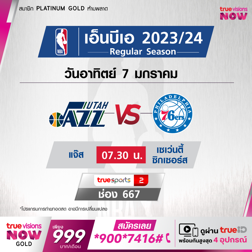 วันอาทิตย์ 7 Jazz Vs 76ERS เวลา 07.30 ทางช่อง TS 2 (667)
