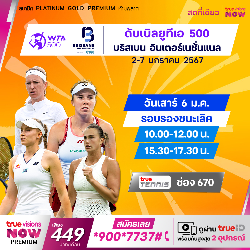 เทนนิสหญิง ดับเบิ้ลยูทีเอ ทัวร์ รายการ บริสเบน อินเตอร์แนชั่นแนล รายการระดับ 500 พบกับนักเทนนิสดาวดังมาร่วมกันชิงชัย เพื่อเตรียมตัวสำหรับศึกแกรนด์สแลมแรกของปี ออสเตรเลียน โอเพ่น ที่ ทรูวิชั่นส์ ที่เดียว