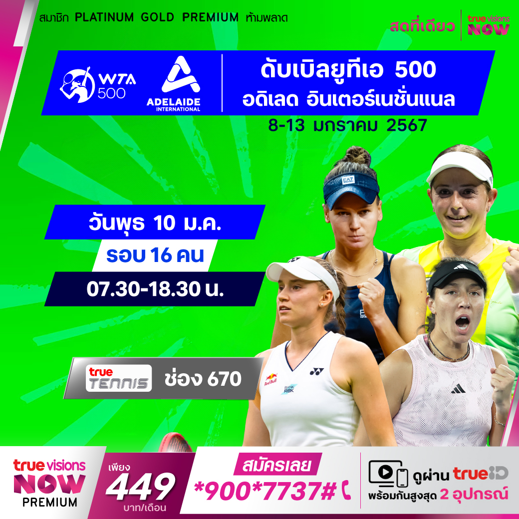 การแข่งขันเทนนิสรายการใหญ่รายการสุดท้ายของฝ่ายหญิง ก่อนที่จะเข้าสู่ศึกแกรนด์สแลมแรกของปี ออสเตรเลียน โอเพ่น กับรายการ อดิเลด อินเตอร์เนชั่นแนล ที่เมือง อดิเลด ประเทศออสเตรเลีย ใครจะคว้าแชมป์รายการนี้ไปครอง ติดตามชมการถ่ายทอดสดได้ที่ ทรูวิชั่นส์