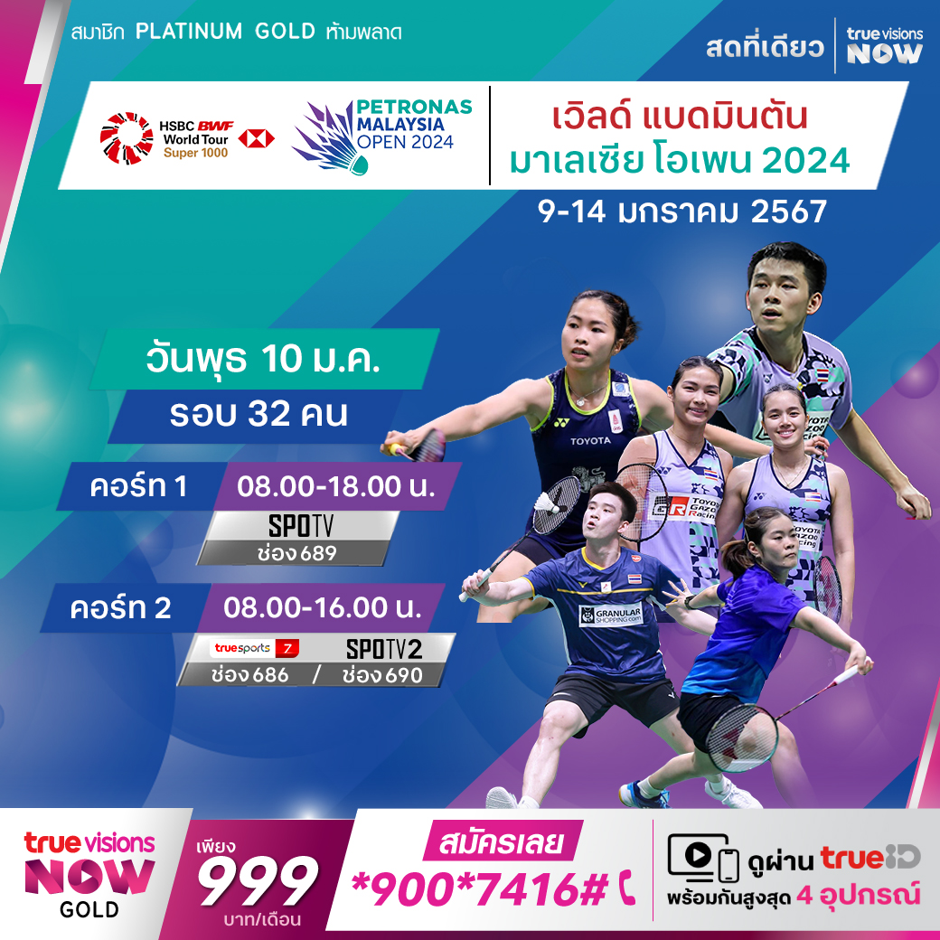 เริ่มต้นปี 2024 ด้วยความยิ่งใหญ่และความคึกคัก ของศึก เวิลด์ แบดมินตัน เก็บคะแนนสะสมโลก รายการใหญ่สุดระดับเวิลด์ ทัวร์ ซูเปอร์ 1000 มาเลเซีย โอเพ่น ร่วมเชียร์ทีมแบดมินตันไทยชุดใหญ่ปะทะนักแบดระดับโลกจากทุกทวีป ในการลุ้นเก็บชัยชนะเพื่อตำแหน่งแชม์แรกของปี