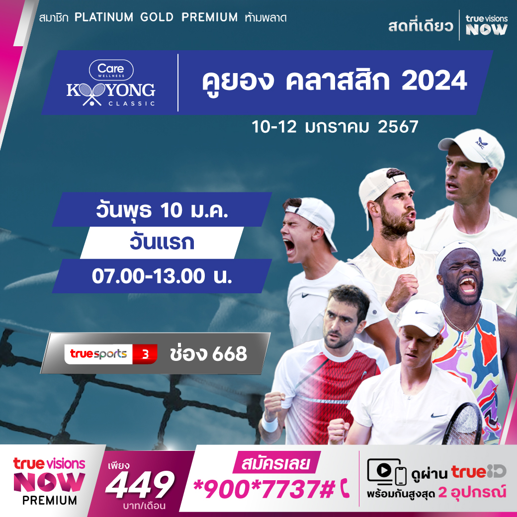 ศึก คูยอง คลาสสิก การแข่งขันเทนนิสอุ่นเครื่องเตรียมตัวก่อนศึกเทนนิส ออสเตรเลียน โอเพ่น รายการนี้แข่งขันเป็นประจำทุกปี และมีการเชิญนักเทนนิสชื่อดังเข้าร่วมแข่งขัน สำหรับปีนี้นำโดย ยานนิค ซินเนอร์, ฮอร์เกอร์ รูเนอร์, แอนดี้ เมอร์รี และ สแตน วาวรินก้า ยอดนักเทนนิสระดับตำนาน ติดตามชมการถ่ายทอดสดเทนนิส คูยอง คลาสสิก ได้ที่ ทรูวิชั่นส์