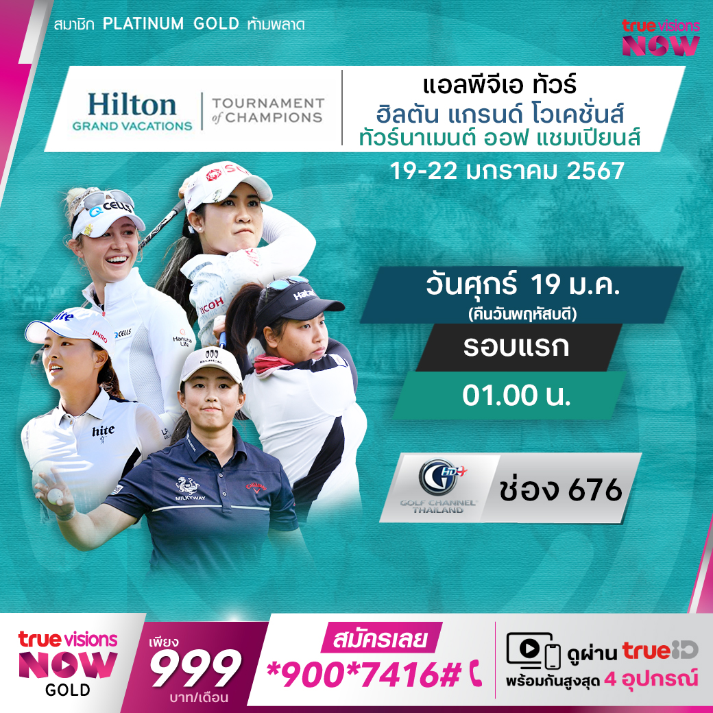 ได้ฤกษ์เปิดฤดูกาลอย่างยิ่งใหญ่แล้ว สำหรับกอล์ฟหญิง แอลพีจีเอ ทัวร์ ทัวร์อันดับ 1 ของโลกฝ่ายหญิง ประเดิมด้วย ฮิลตัน แกรนด์ โวเคชั่นส์ ทัวร์นาเมนต์ ออฟ แชมเปี้ยนส์ คัดมาเฉพาะมือเจ๋งๆ ที่มีผลงานสุดยอดในฤดูกาลที่ผ่านมา ดวลกันที่สนาม เลค โนนา กอล์ฟ แอนด์ คันทรี่ คลับใน ออร์ลันโด้ รัฐฟลอริด้า เชียร์โปรหญิงไทยและมือระดับโลก สดๆ จุใจ ครบทุกรอบ ทางทรูวิชั่นส์