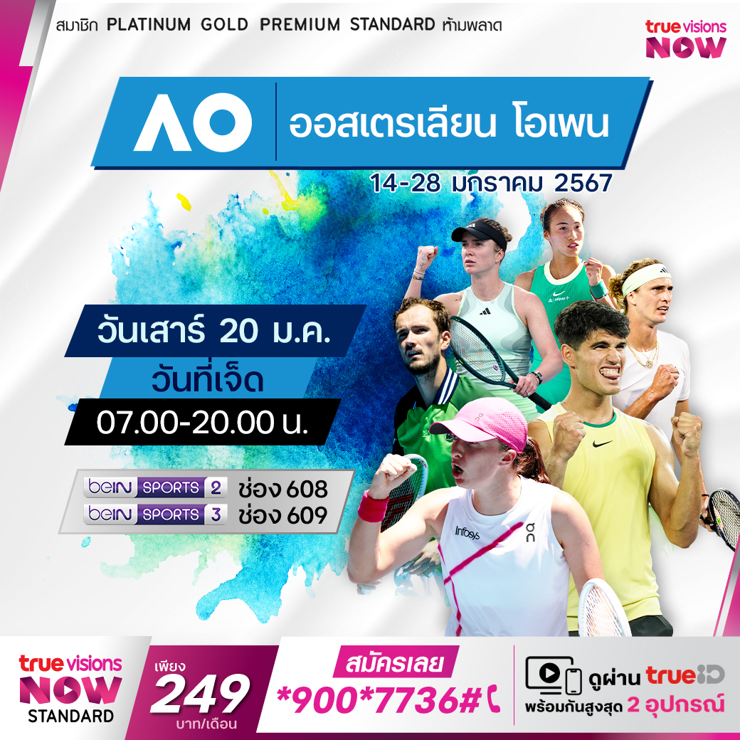 การแข่งขันเทนนิสแกรนด์สแลมแรกของปี 2024 ศึกออสเตรเลียน โอเพ่น กลับมาอีกครั้ง กับรายการที่ว่ากันว่าสภาพอากาศมีผลต่อการแข่งขันมากที่สุด โนวัค ยอโควิช แชมป์เก่าของฝ่ายชายรายการนี้และเป็นแชมป์ 10 สมัย รวมถึง อารีนา ซาบาเลนก้า แชมป์เก่าฝ่ายหญิง จะสามารถป้องกันแชมป์ไว้ได้หรือไม่ ติดตามการถ่ายทอดสดได้ที่ ทรูวิชั่นส์ ที่เดียวเท่านั้น