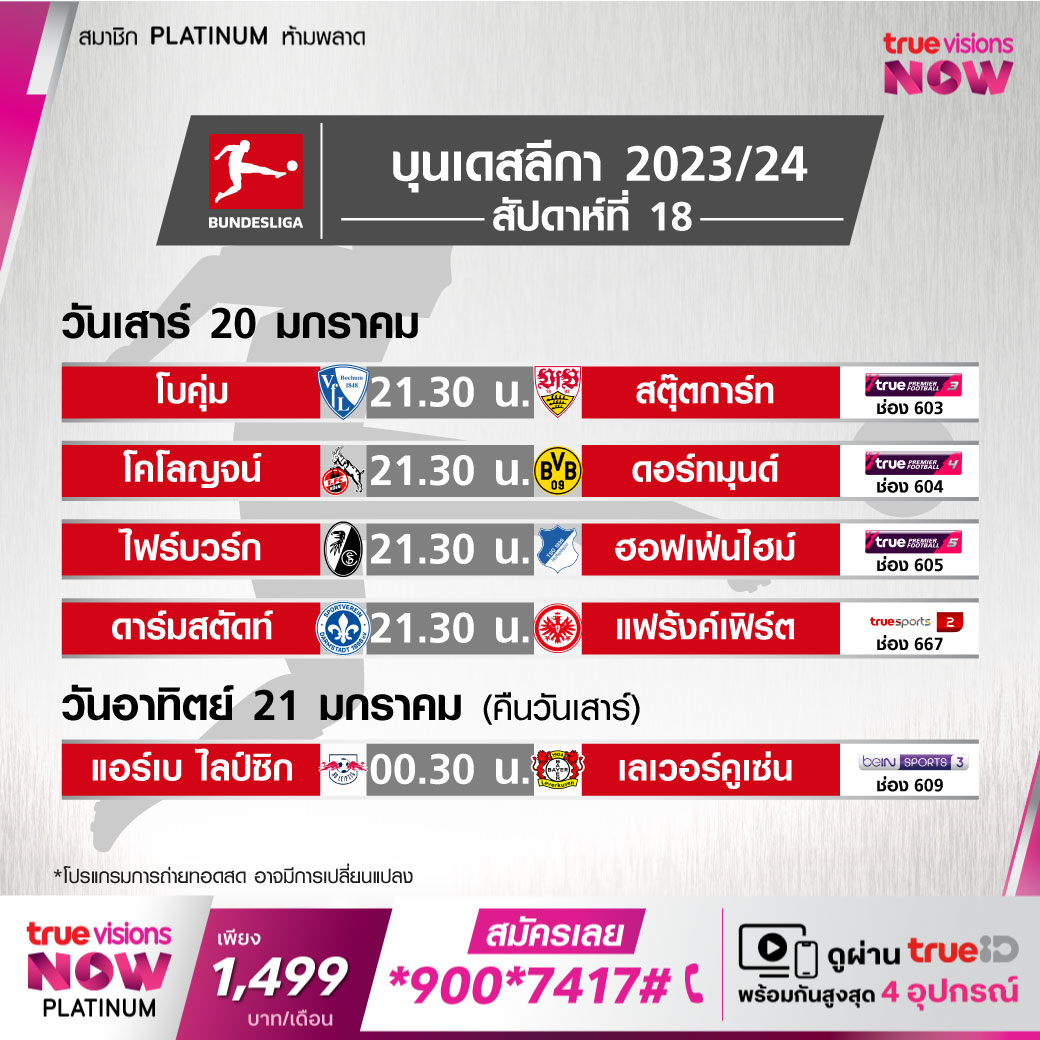 Freiburg vs Hoffenheim เวลา 21.30-23.30 ทางช่อง TPF 5 (605)