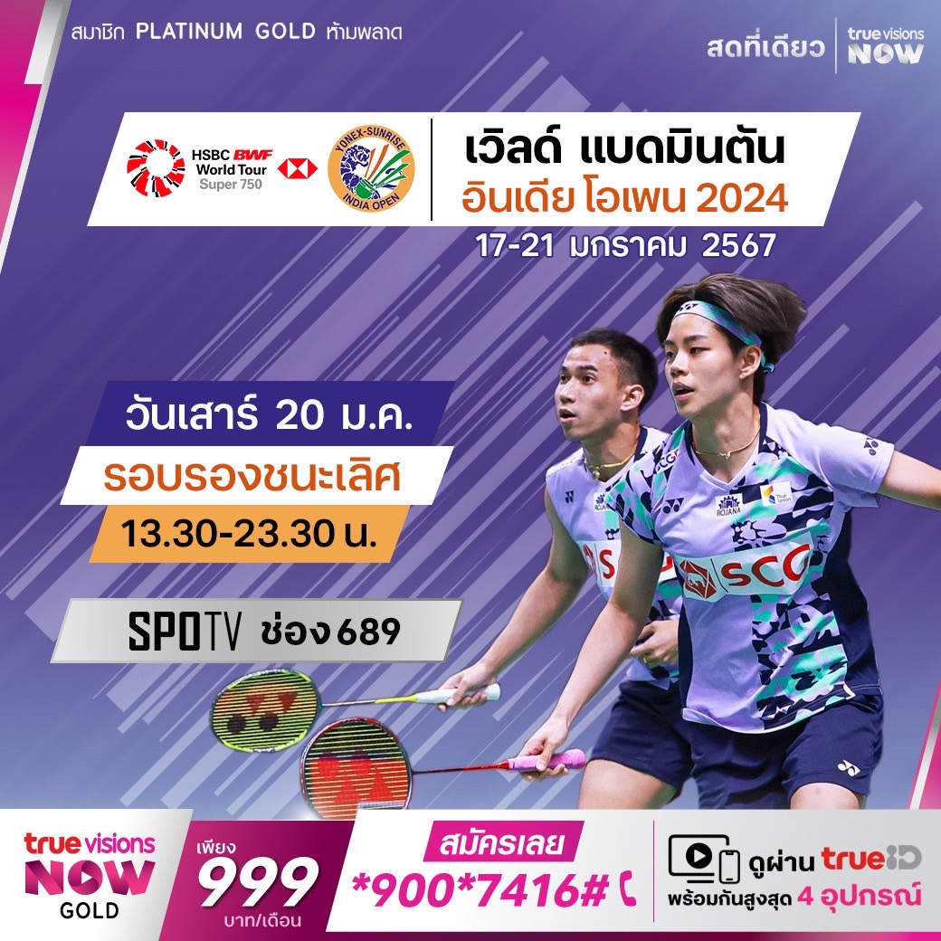 แบดมินตัน เวิลด์ ทัวร์ ซูเปอร์ 750 อินเดีย โอเพ่น ที่กรุงนิว เดลลี ชิงแชมป์ทั้ง 5 ประเภท และเงินรางวัลรวม 850,000 เหรียญสหรัฐฯ ร่วมเชียร์ทีมแบดมินตันไทยและมือท็อปๆ ของโลกแย่งแชมป์กันแบบจุใจ รอบแรกถึงรอบชิงชนะเลิศ แบบเอ็กซ์คลูซีฟ ที่เดียว ที่ ทรูวิชั่นส์