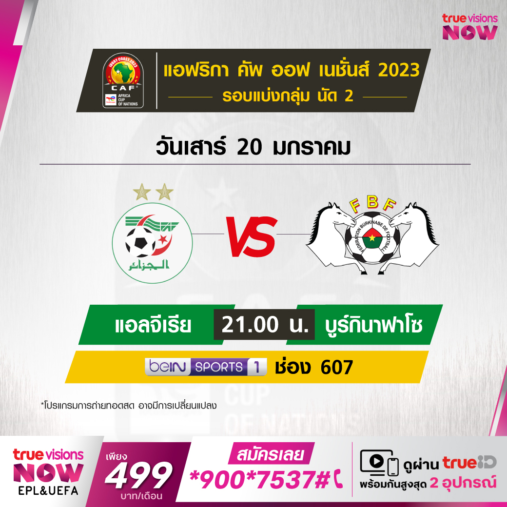 Algeria vs Burkina Faso เวลา 21.00-23.00 ทางช่อง beIN 1 (607)