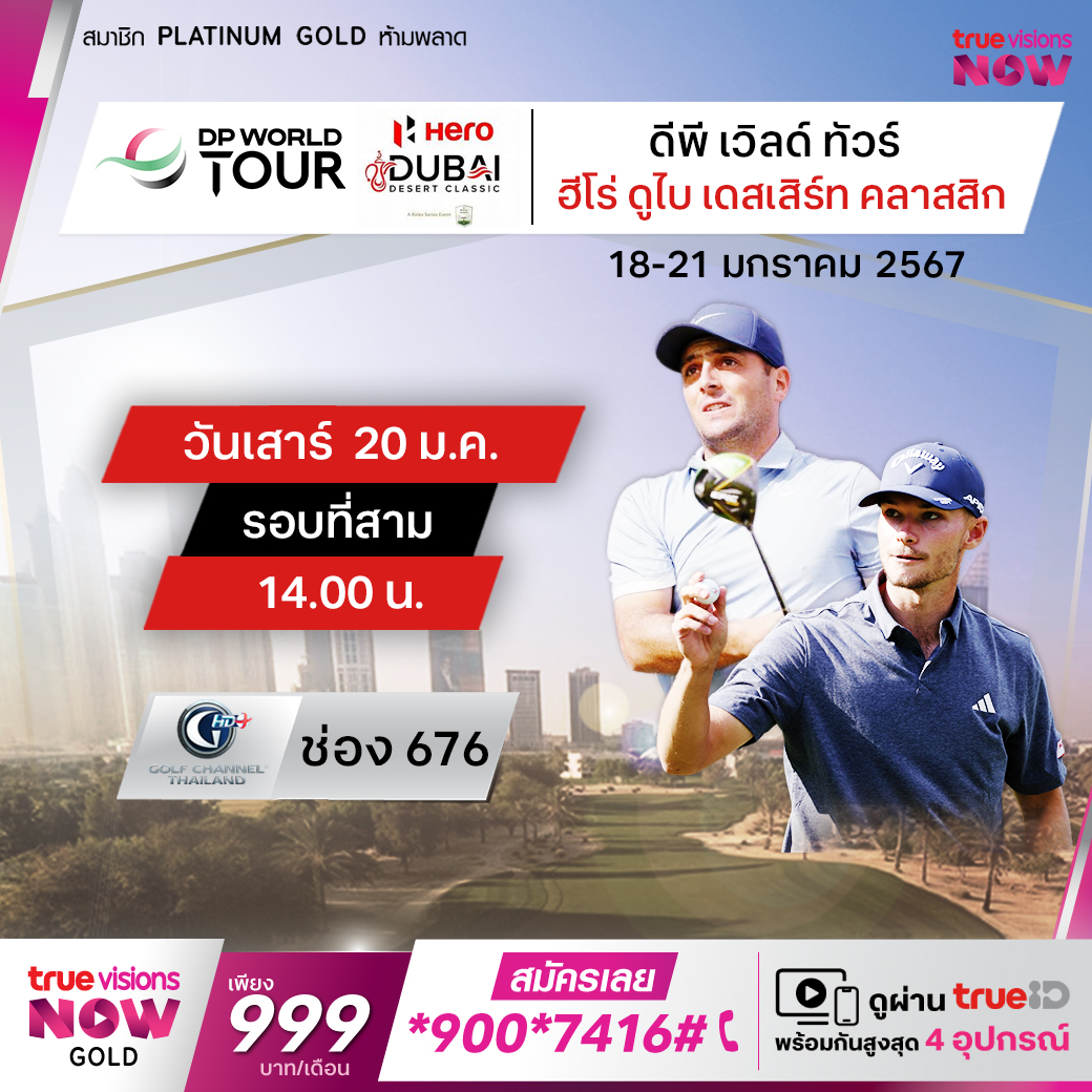 ดีพี เวิลด์ ทัวร์ ช่วงออกสตาร์ทฤดูกาล 2024 ยังอยู่ในตะวันออกกลางเป็นสัปดาห์ที่ 2 โปรระดับโลกและหัวแถวของทัวร์ ไปรวมตัวกันที่เมืองดูไบ ประเทศสหรัฐอาหรับเอมิเรตส์ เพื่อชิงแชมป์รายการ ฮีโร่ ดูไบ เดสเสิร์ท คลาสสิก ที่มีเงินรางวัลรวมให้ชิงกันสูงถึง 9 ล้านเหรียญสหรัฐฯ ใครจะผงาดเป็นแชมป์ในปีนี้ สด จุใจ ครบทุกรอบ ทางทรูวิชั่นส์