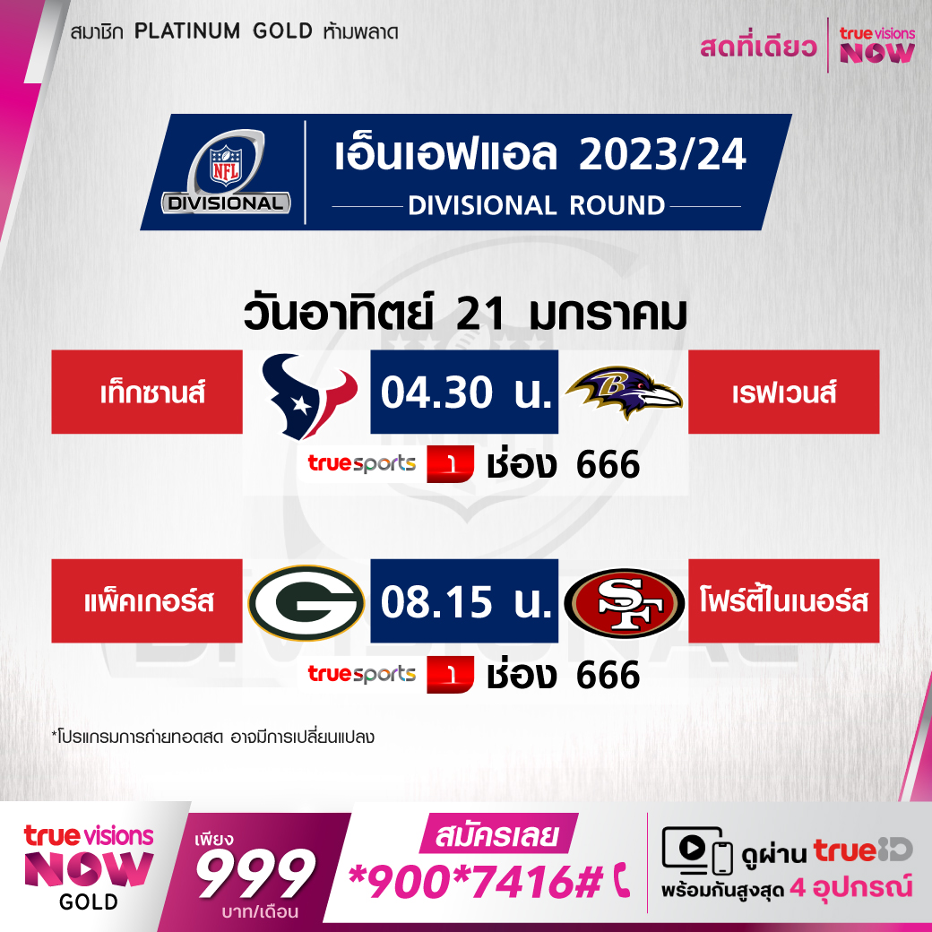 วันอาทิตย์ 21 ม.ค. Texans Vs Ravens เวลา 04.30 ทางช่อง TS 1 (666)
