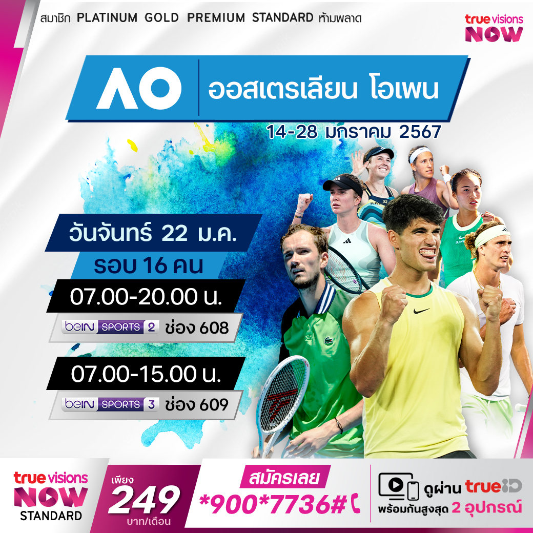 การแข่งขันเทนนิสแกรนด์สแลมแรกของปี 2024 ศึกออสเตรเลียน โอเพ่น มาถึงในรอบ 16 คนสุดท้ายแล้ว โนวัค ยอโควิช แชมป์เก่าของฝ่ายชายรายการนี้และเป็นแชมป์ 10 สมัย รวมถึง อารีนา ซาบาเลนก้า แชมป์เก่าฝ่ายหญิง จะสามารถป้องกันแชมป์ไว้ได้หรือไม่ ติดตามการถ่ายทอดสดได้ที่ ทรูวิชั่นส์ ที่เดียวเท่านั้น
