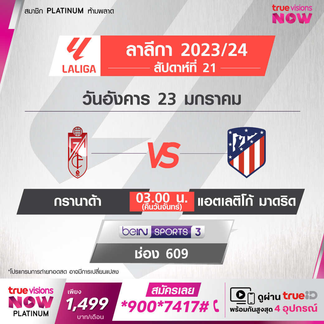 Granada vs Atletico เวลา 03.00-05.00 ทางช่อง beIN 3 (609)