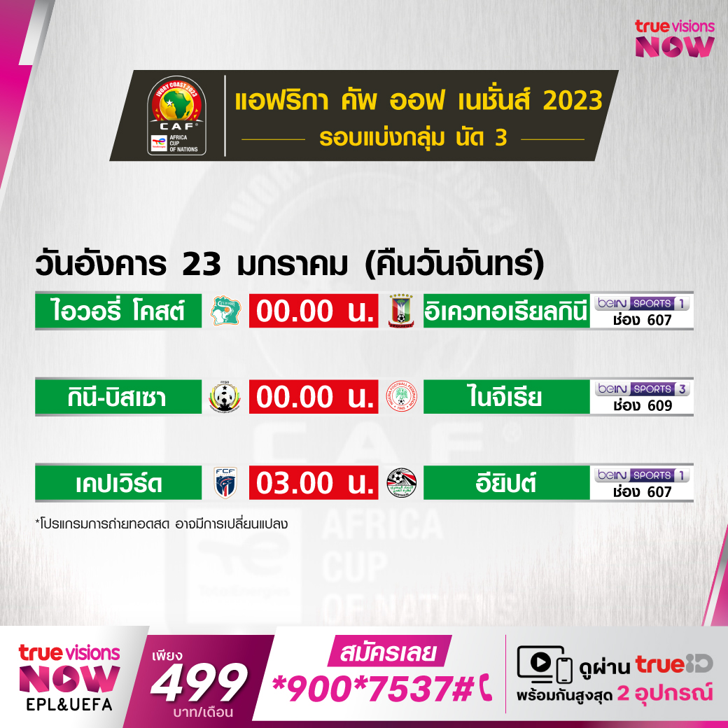 Ivory Coast vs Equatorial Guinea เวลา 00.00-02.00 ทางช่อง beIN 1 (607)