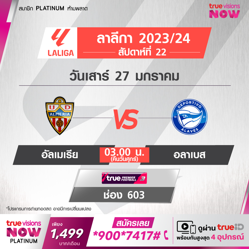 Almeria vs Alaves เวลา 03.00-05.00 ทางช่อง TPF 3 (603)