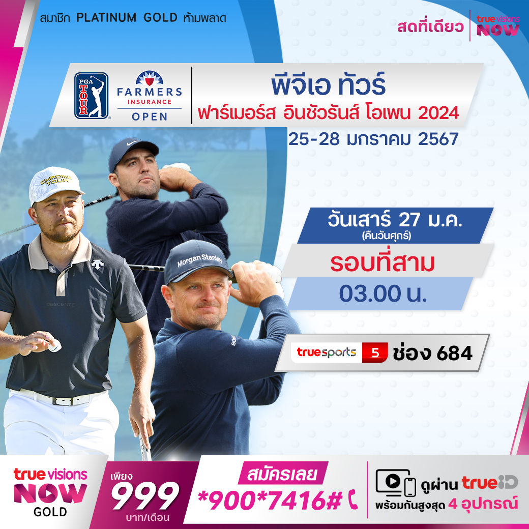 กอล์ฟ พีจีเอ ทัวร์ รายการสำคัญระดับ ซิกเนเจอร์ อีเว้นท์ ฟาร์เมอร์ส อินชัวรันซ์ โอเพน ที่สนาม ทอร์รี่ ไพน์ส กอล์ฟ คอร์ส (เซาธ์ คอร์ส) ในซานดิเอโก้ แคลิฟอร์เนีย ชิงเงินรางวัลมหาศาลถึง 20 ล้านเหรียญสหรัฐฯ และ 700 คะแนนสำหรับคะแนนสะสม เฟ็ดเอ็กซ์ คัพ โปรแถวหน้าของทัวร์ ร่วมดวลกันคับคั่ง ลุ้นกันครบทุกรอบ สดแบบเอ็กซ์คลูซีฟ ที่ ทรูวิชั่นส์