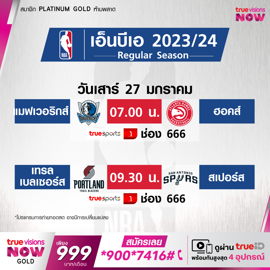 วันเสาร์ 27 ม.ค. Mavericks Vs Hawks เวลา 07.00 ทางช่อง TS 1 (666)