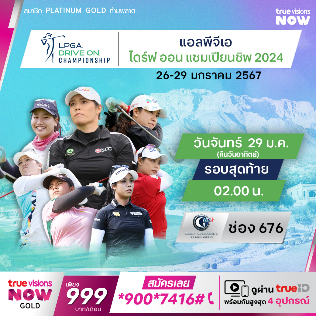 กอล์ฟ แอลพีจีเอ ทัวร์ สัปดาห์นี้ ร่วมเชียร์โปรสาวไทยร่วมดวลและลุ้นแชมป์กับโปรระดับโลกในรายการ ไดรฟ์ ออน แชมเปี้ยนชิพ ที่สนาม เบรเดนตัน คันทรี่คลับ ชิงเงินรางวัลรวม 1,750,000 เหรียญสหรัฐฯ ลุ้นกันสดๆ รอบต่อรอบว่าใครจะเก่งที่สุดและก้าวขึ้นเป็นแชมป์ในปีนี้ สดครบจุใจ ที่ ทรูวิชั่นส์