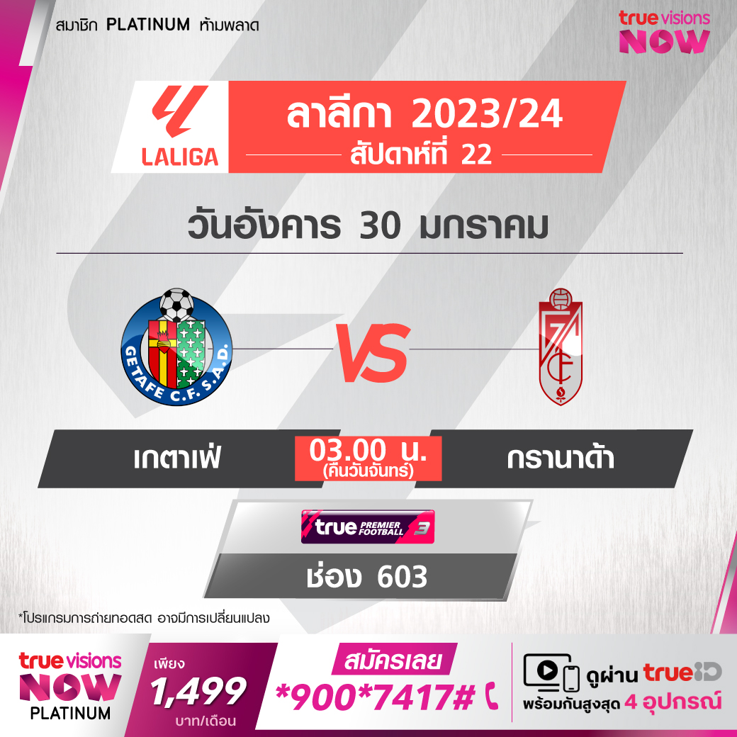 Getafe vs Granada เวลา 03.00-05.00 ทางช่อง TPF 3 (603)