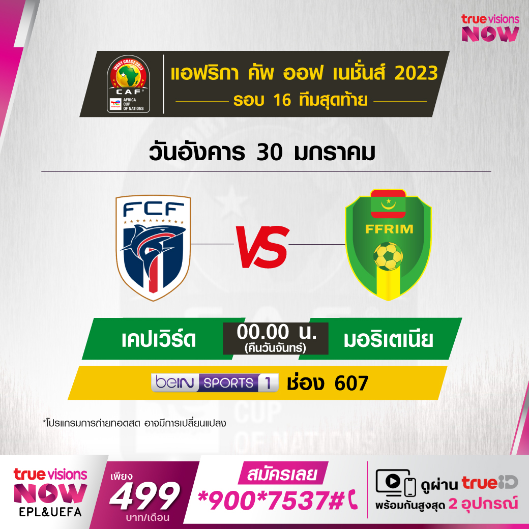 Cape Verde vs Mauritania เวลา 00.00-02.00 ทางช่อง beIN 1 (607)