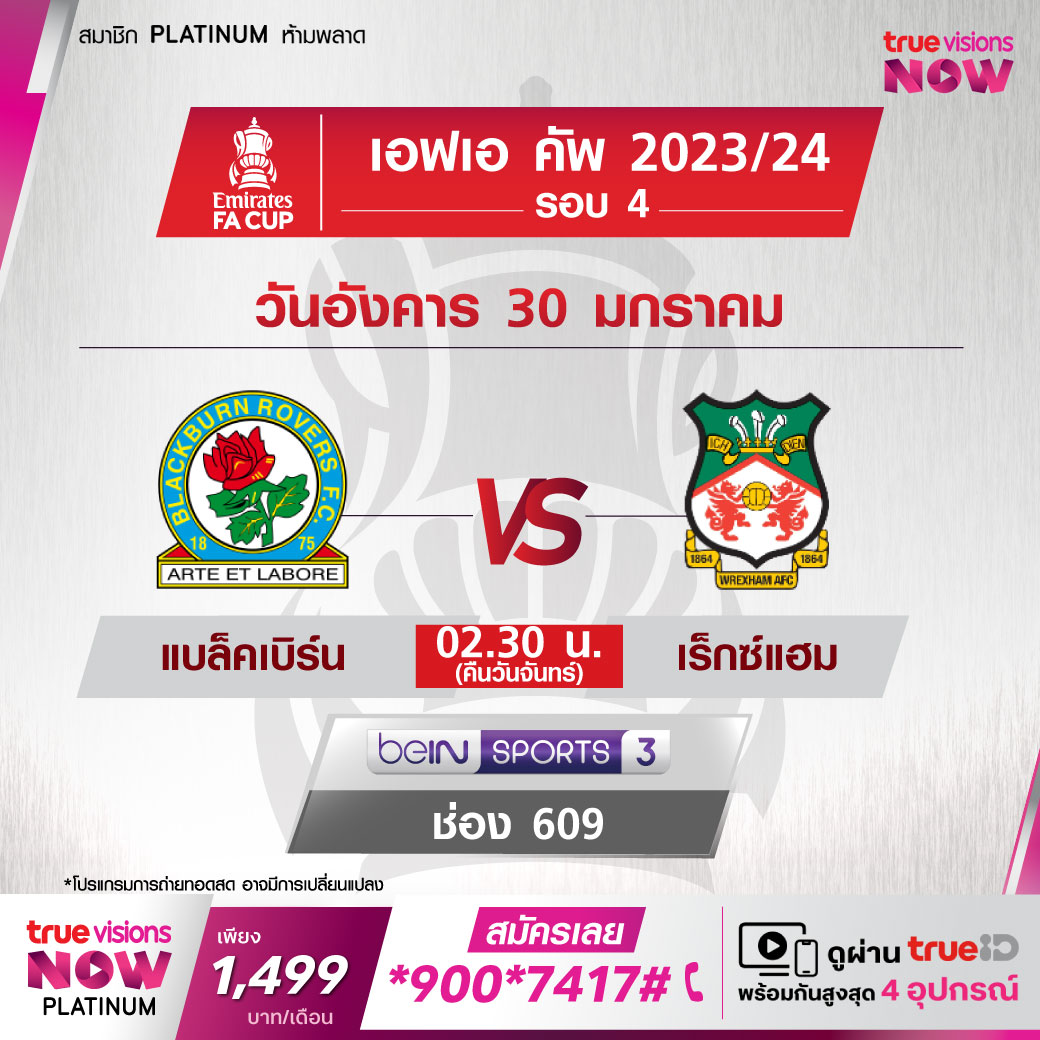 Blackburn vs Wrexham เวลา 02.30-04.30 ทางช่อง beIN 3 (609)