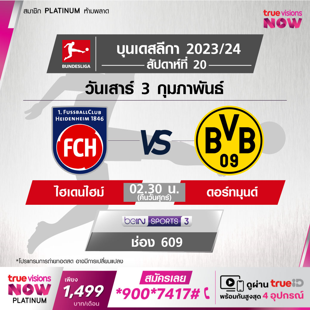 Heidenheim 1846 vs Dortmund เวลา 02.30-04.30 ทางช่อง beIN 3 (609)