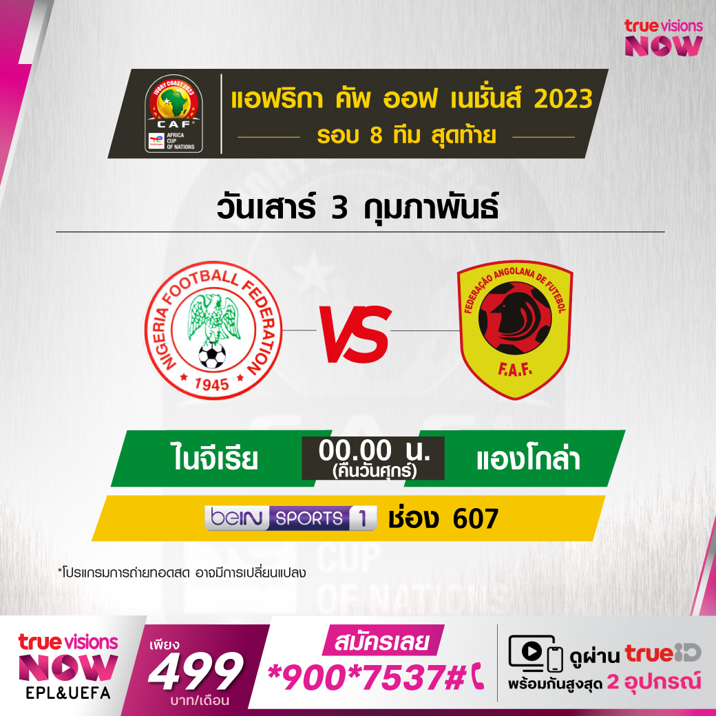 Nigeria vs Angola เวลา 00.00-02.00 ทางช่อง beIN 1 (607)