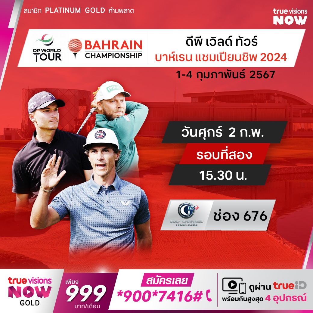 กอล์ฟ ดีพี เวิลด์ ทัวร์ ยังคงปักหลักดวลกันในตะวันออกกลาง ต่อเนื่องเป็นรายการที่ 4 ของฤดูกาลใหม่ สัปดาห์นี้แฟนๆ จะได้ชมลีลาของโปรระดับหัวแถวของทัวร์ ในรายการ บาห์เรน แชมเปี้ยนชิพ แข่งกันทำสกอร์เพื่อช่วงชิงตำแหน่งแชมป์และโทรฟี่ชนะเลิศที่มีเพียงหนึ่งเดียว สดสะใจ รอบต่อรอบ จาก สนาม รอยัล กอล์ฟ คลับ ประเทศบาห์เรน ที่ ทรูวิชั่นส์