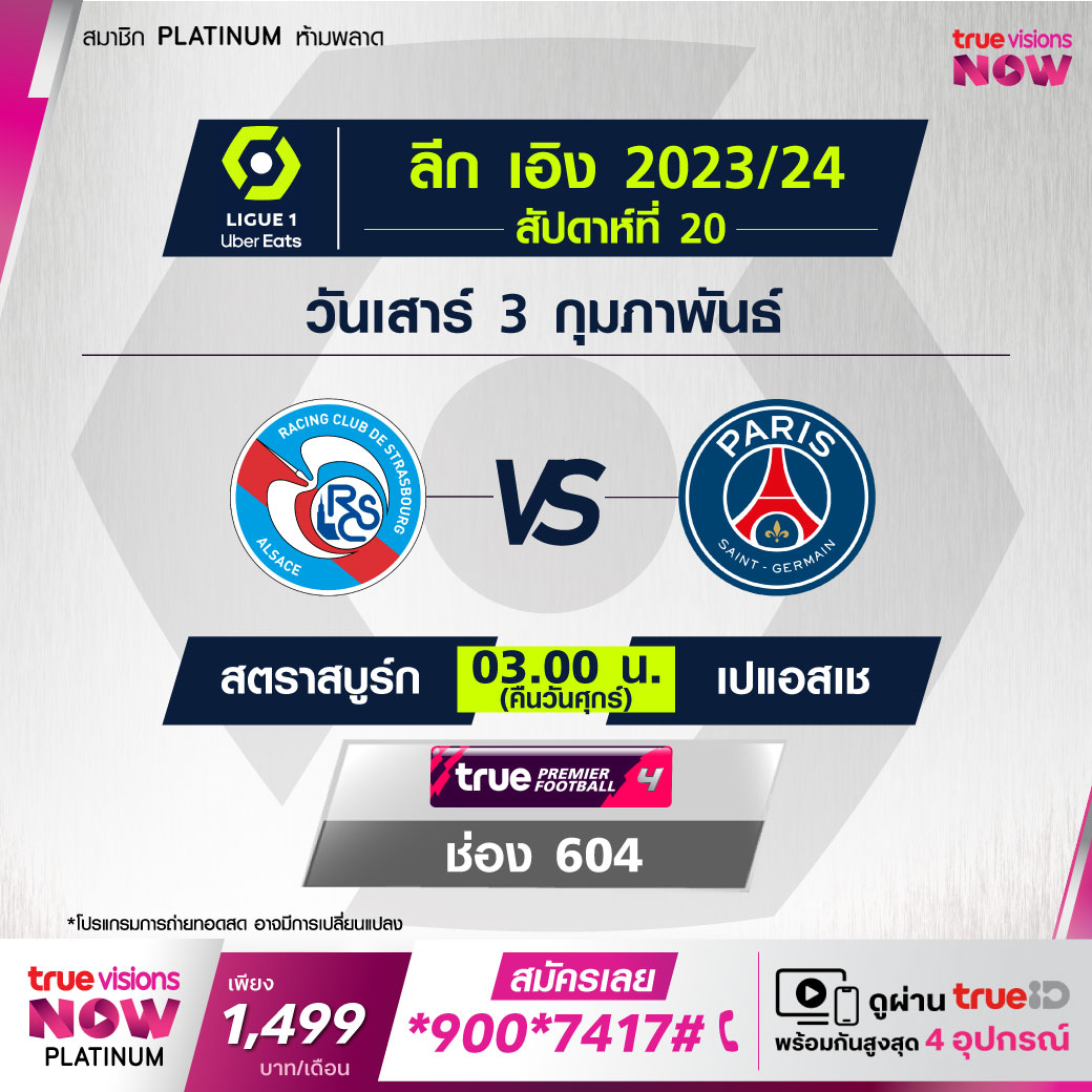 Strasbourg vs PSG เวลา 03.00-05.00 ทางช่อง TPF 4 (604)