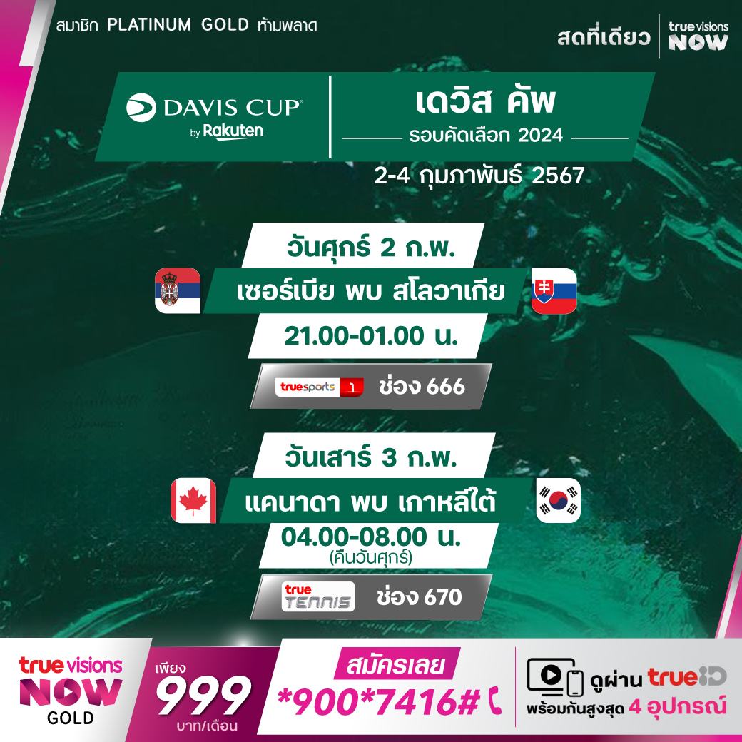Canada vs South Korea เวลา 04.00-08.00 ทางช่อง True Tennis (670)
