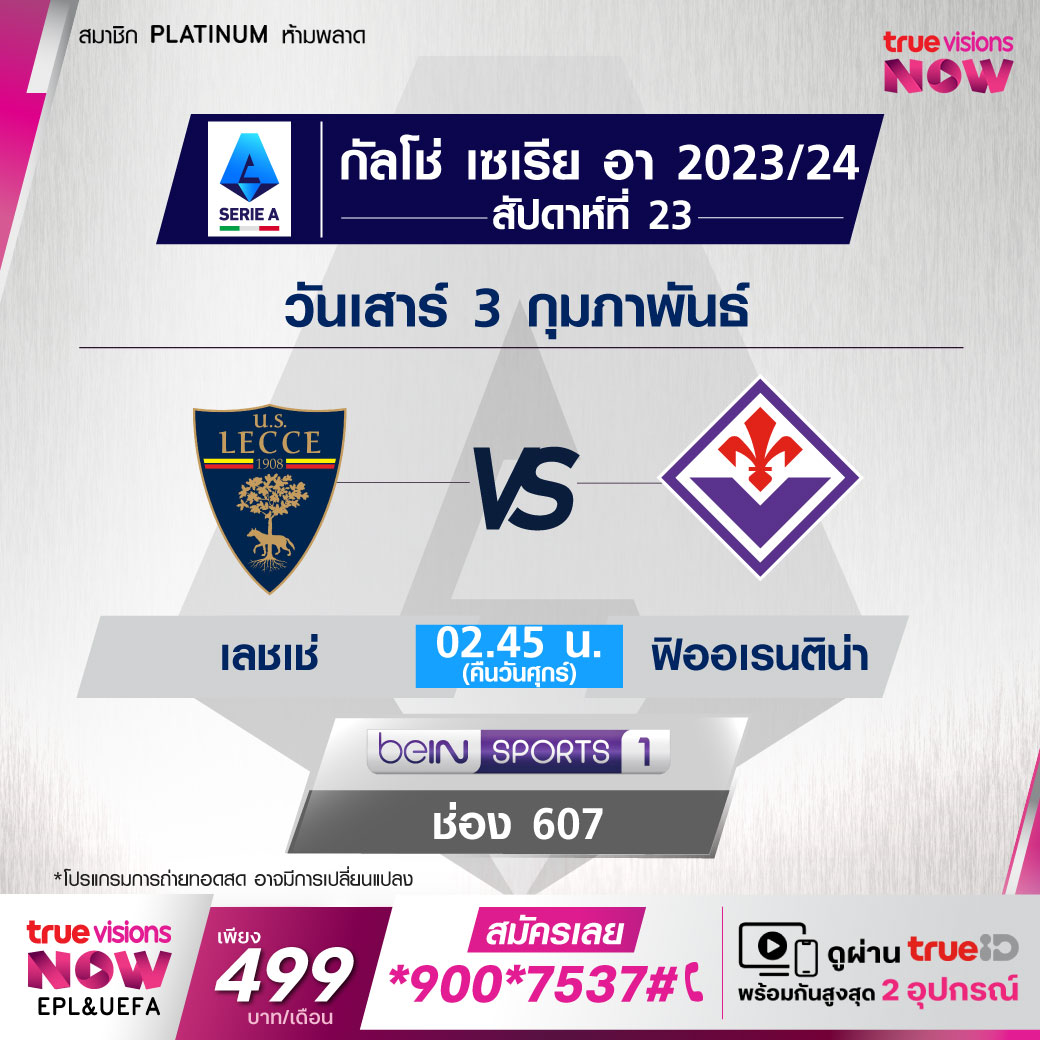 Lecce vs Fiorentina เวลา 02.45-04.45 ทางช่อง beIN 1 (607)