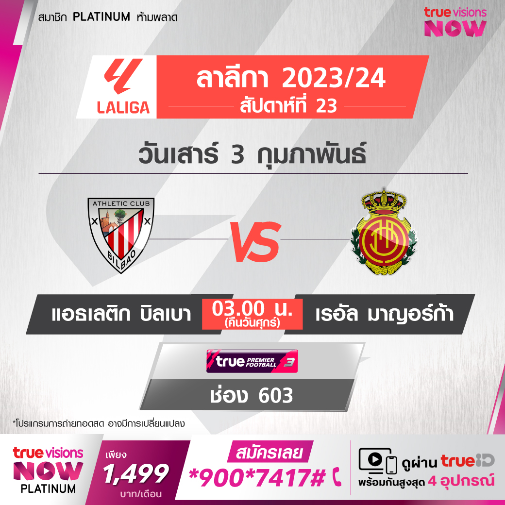 Athletic vs Mallorca เวลา 03.00-05.00 ทางช่อง TPF 3 (603)
