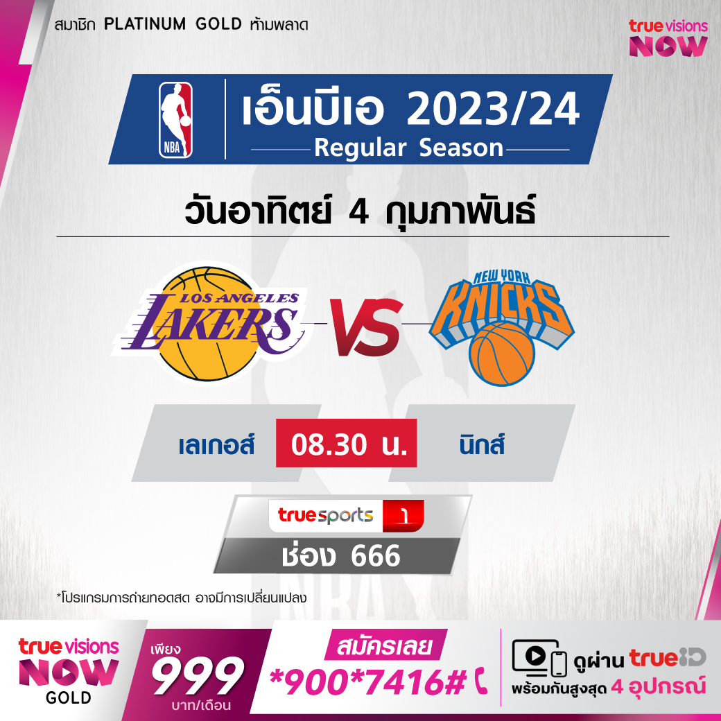 วันอาทิตย์ 4 ก.พ. Lakers Vs Knicks เวลา 08.30 ทางช่อง TS 1 (666)