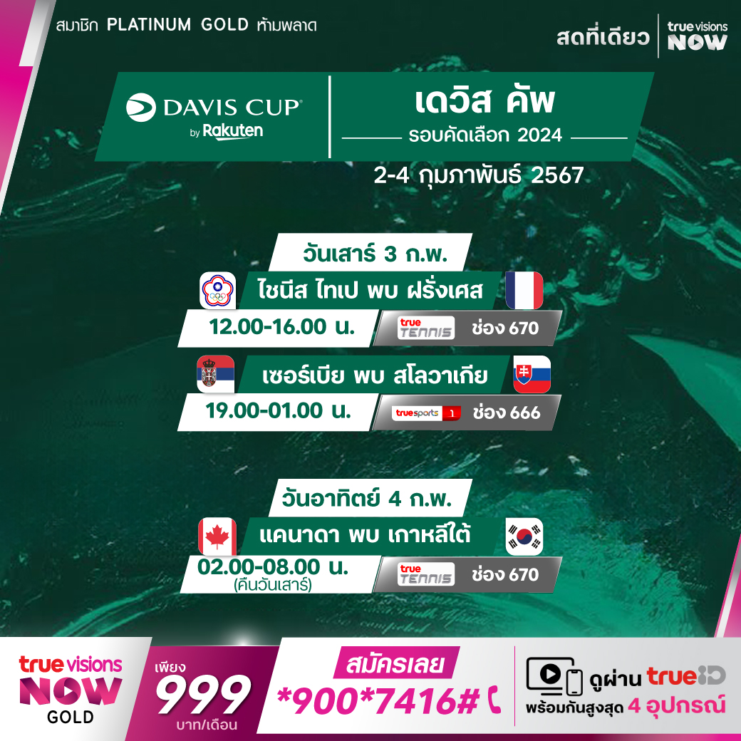 Canada vs South Korea เวลา 02.00-08.00 ทางช่อง True Tennis (670)