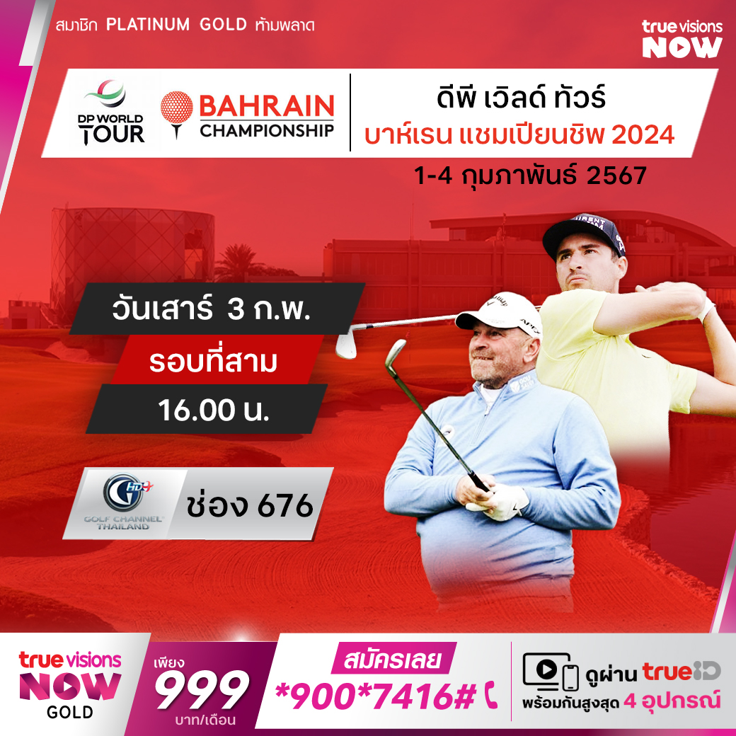 กอล์ฟ ดีพี เวิลด์ ทัวร์ ยังคงปักหลักดวลกันในตะวันออกกลาง ต่อเนื่องเป็นรายการที่ 4 ของฤดูกาลใหม่ สัปดาห์นี้แฟนๆ จะได้ชมลีลาของโปรระดับหัวแถวของทัวร์ ในรายการ บาห์เรน แชมเปี้ยนชิพ แข่งกันทำสกอร์เพื่อช่วงชิงตำแหน่งแชมป์และโทรฟี่ชนะเลิศที่มีเพียงหนึ่งเดียว สดสะใจ รอบต่อรอบ จาก สนาม รอยัล กอล์ฟ คลับ ประเทศบาห์เรน ที่ ทรูวิชั่นส์
