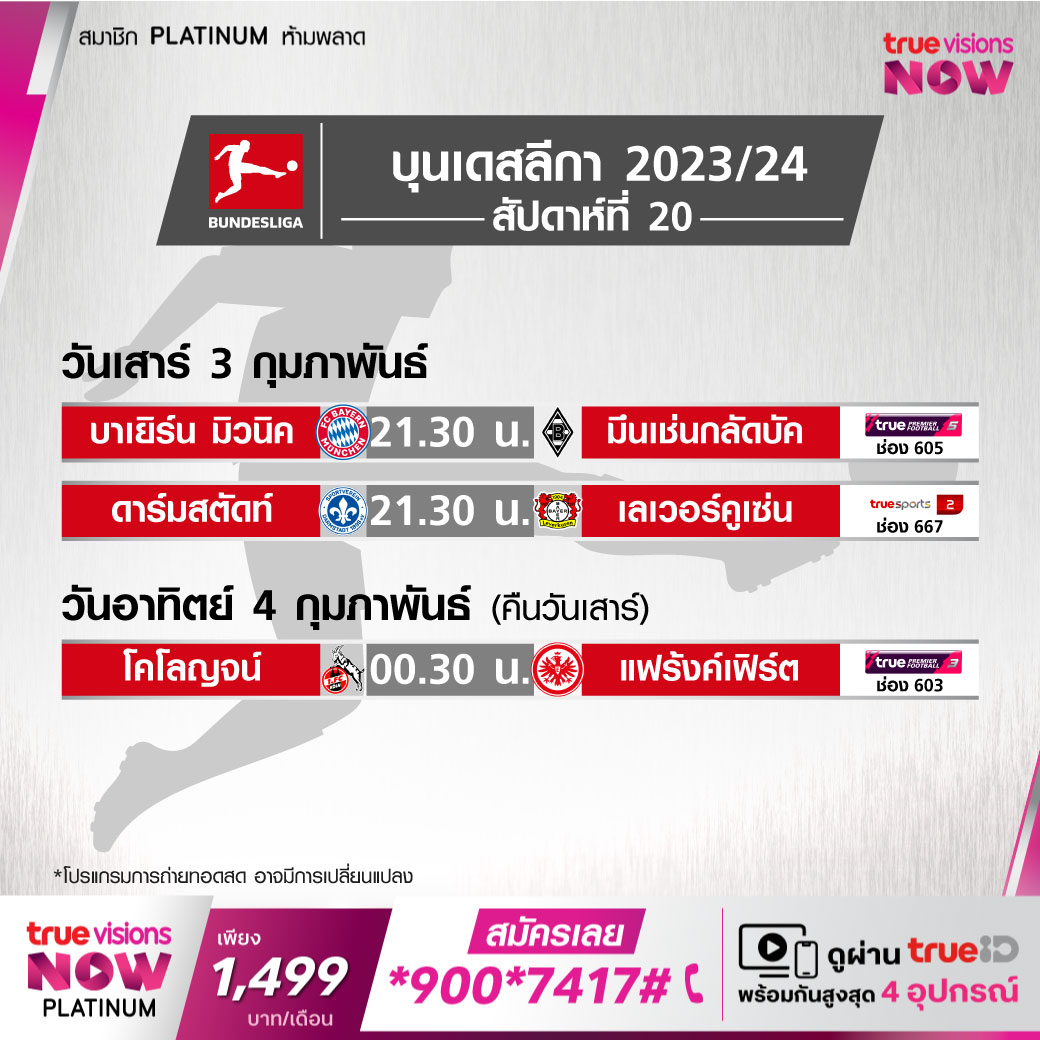 Bayern vs Monchengladbach เวลา 21.30-23.30 ทางช่อง TPF 5 (605)