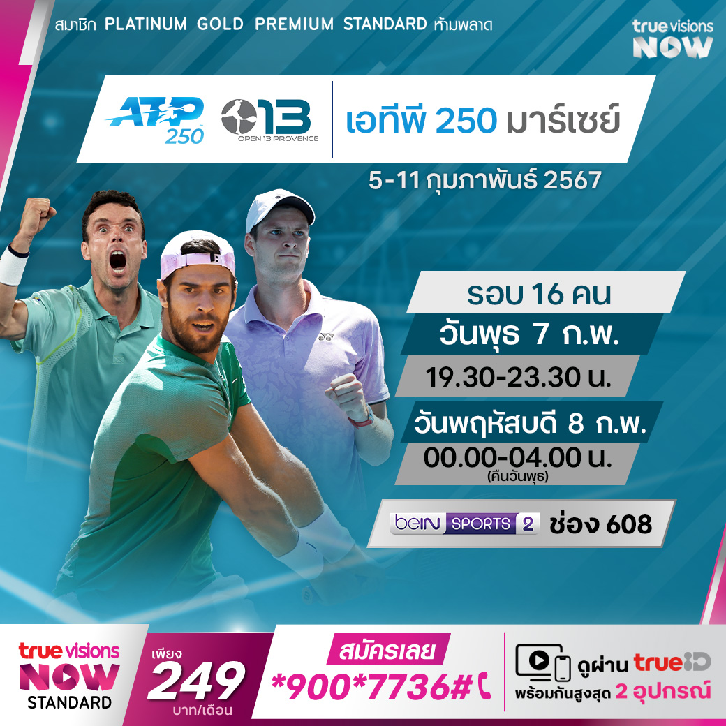 ติดตามต่อเนื่องกับเทนนิสชาย เอทีพี ทัวร์ รายการ มาร์กเซย์ โอเพ่น ที่เล่นกันใน อินดอร์ ฮาร์ทคอร์ท ที่เมืองมาร์กเซย ประเทศฝรั่งเศส ร่วมลุ้นกันว่าใครจะคว้าแชมป์รายการนี้ไปครอง ชมสด จุใจ ที่ ทรูวิชั่นส์