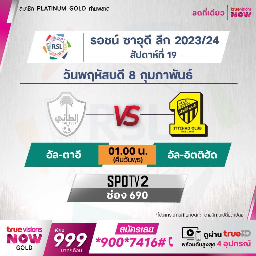 Al-Tai vs Al-Ittihad เวลา 01.00-03.00 ทางช่อง SPOTV2 (690)