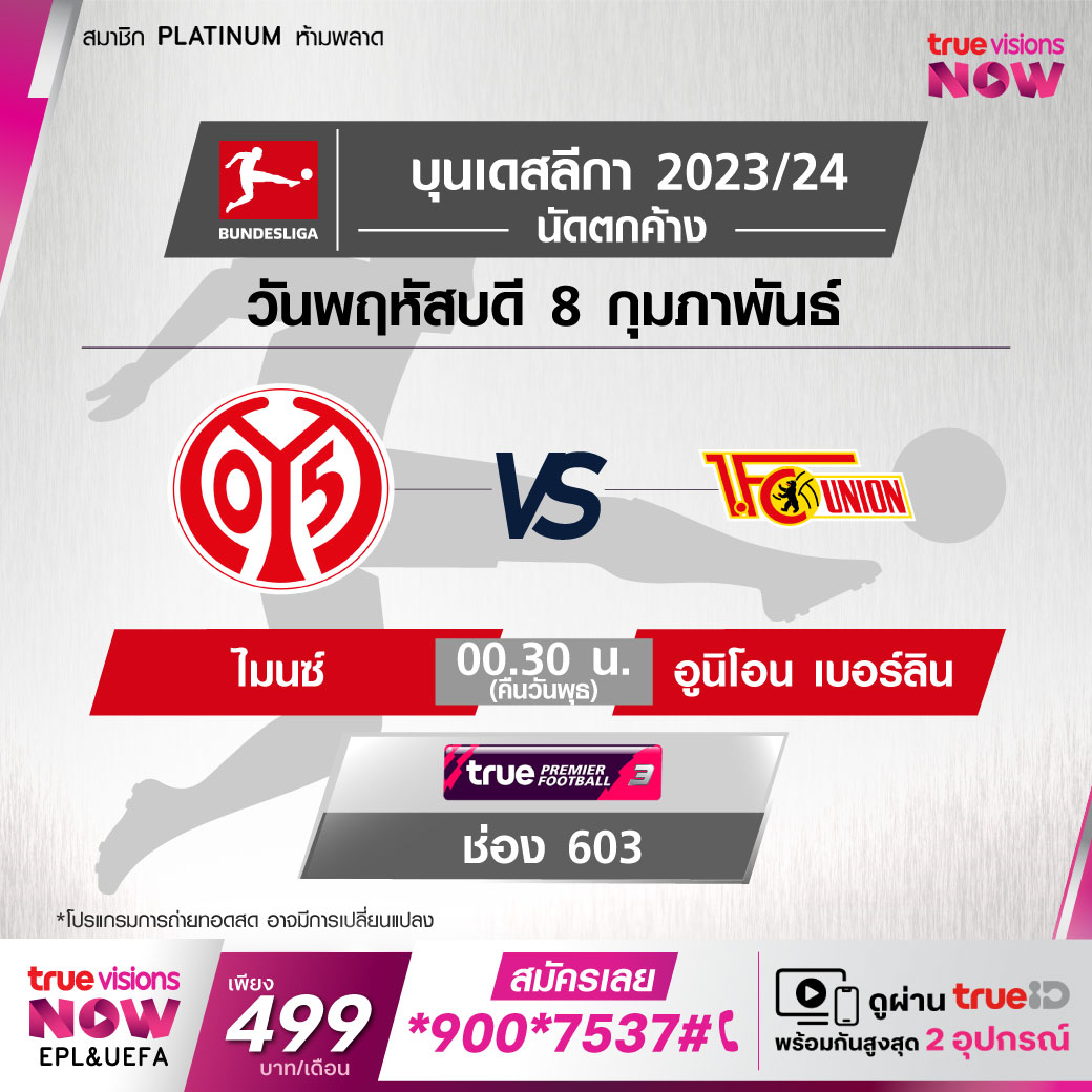 Mainz vs FC Union เวลา 00.30-02.30 ทางช่อง TPF 3 (603)