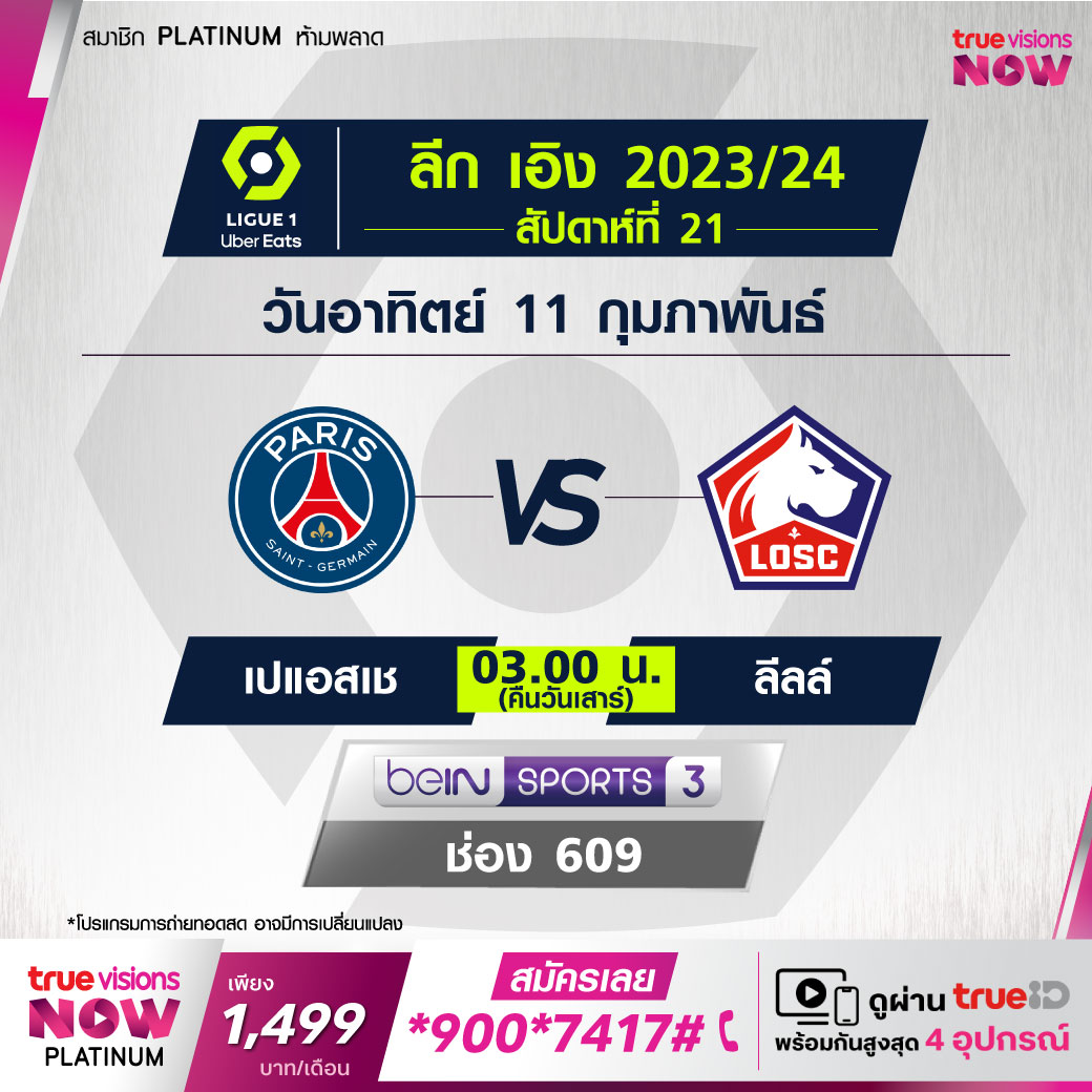 PSG vs Lille เวลา 03.00-05.00 ทางช่อง beIN 3 (609)