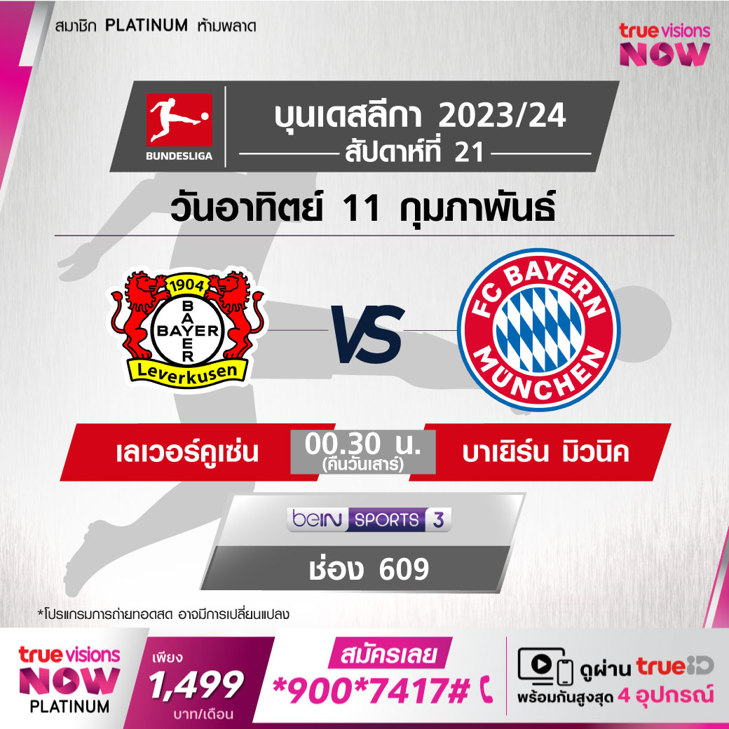 Leverkusen vs Bayern เวลา 00.30-02.30 ทางช่อง beIN 3 (609)