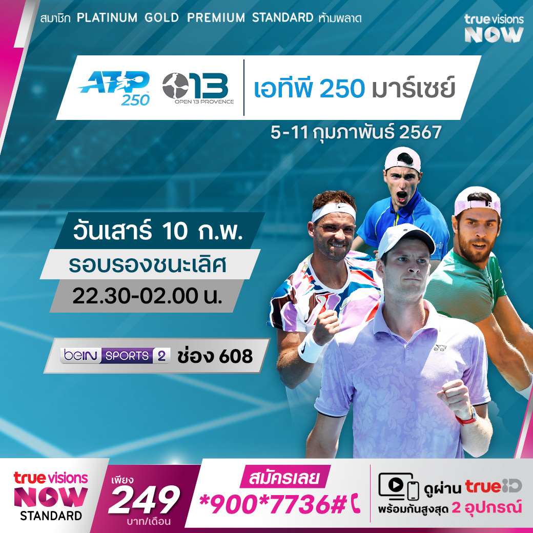 ติดตามต่อเนื่องกับเทนนิสชาย เอทีพี ทัวร์ รายการ มาร์กเซย์ โอเพ่น ที่เล่นกันใน อินดอร์ ฮาร์ทคอร์ท ที่เมืองมาร์กเซย ประเทศฝรั่งเศส ร่วมลุ้นกันว่าใครจะคว้าแชมป์รายการนี้ไปครอง ชมสด จุใจ ที่ ทรูวิชั่นส์