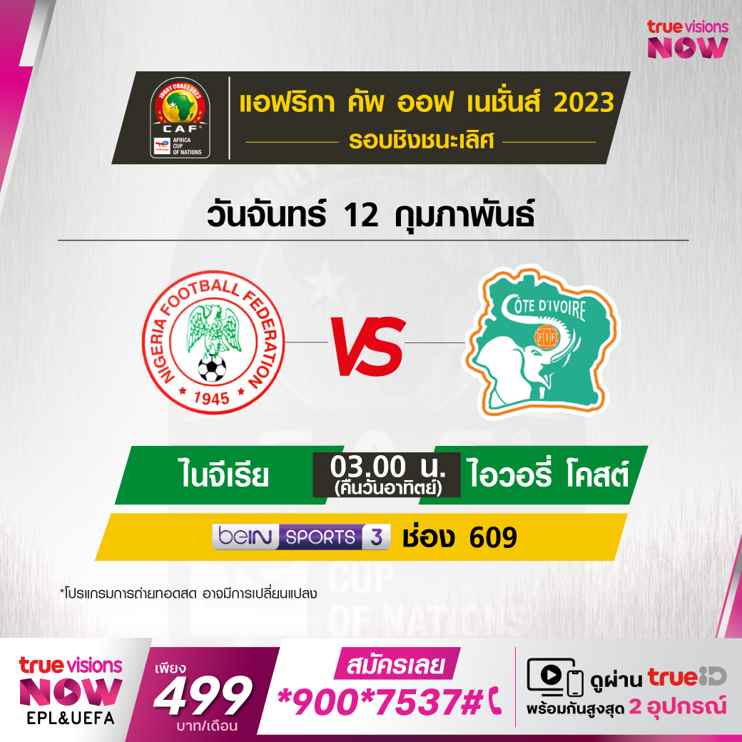 Nigeria vs Ivory Coast เวลา 03.00-05.00 ทางช่อง beIN 3 (609)