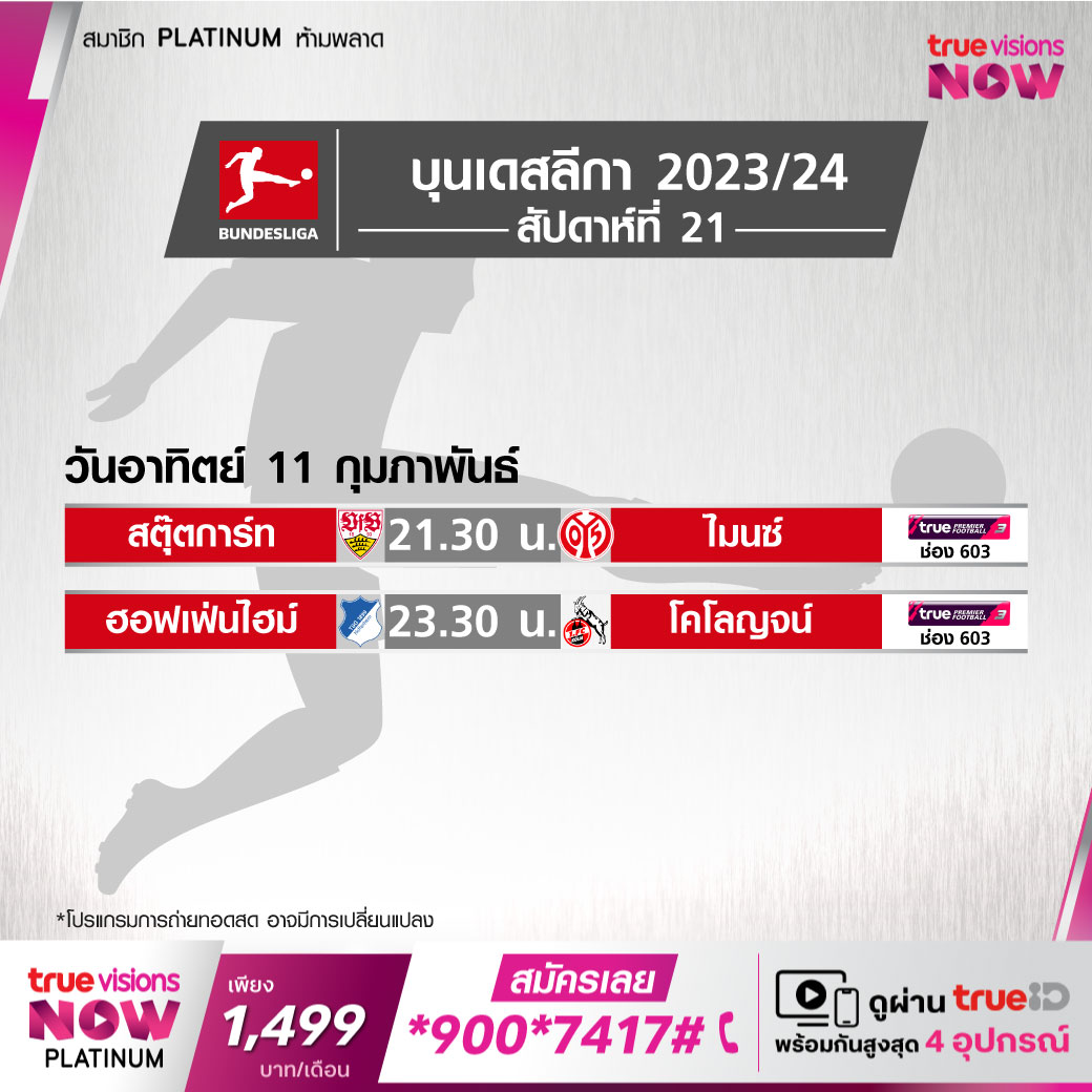 Hoffenheim vs Cologne เวลา 23.30-01.30 ทางช่อง TPF 3 (603)