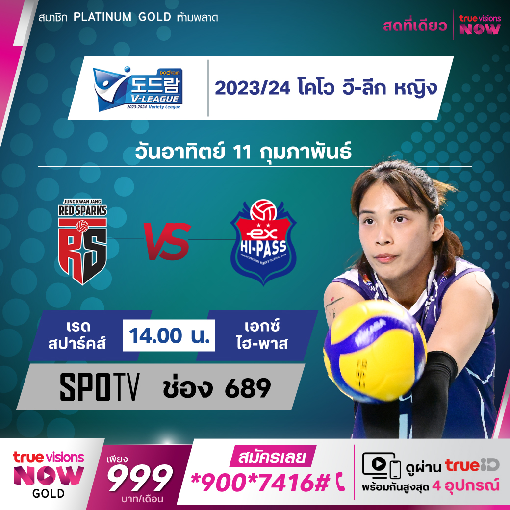 RED SPARKS vs EX HI PASS เวลา 14.00 ทางช่อง SPOTV (689)