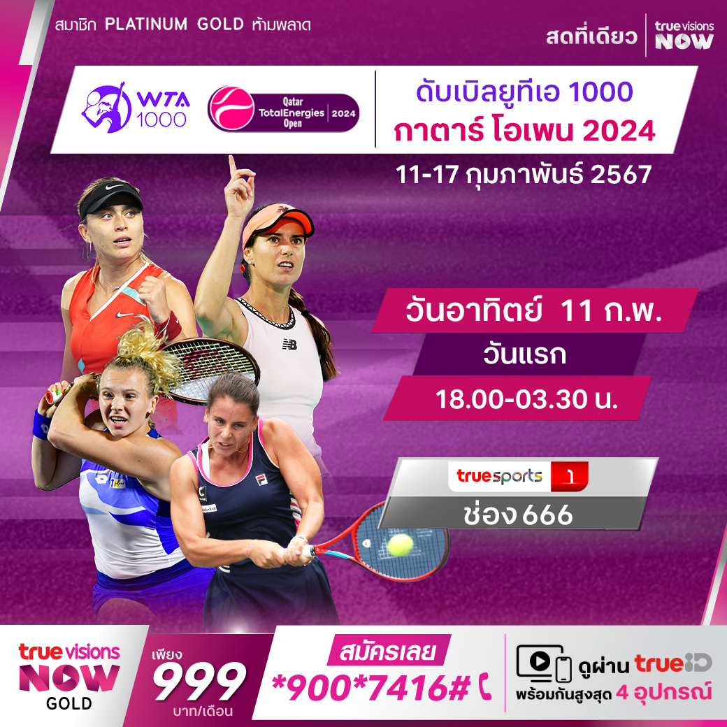 เทนนิสหญิง ดับเบิ้ลยูทีเอ ทัวร์ รายการระดับ WTA 1000 รายการแรกของปี กับรายการ กาตาร์ โอเพ่น จับตาดู อิกา ซิออนเทค ยอดนักเทนนิสชาวโปแลนด์ กับการลุ้นคว้าแชมป์ หลังพลาดไปในการแข่งขันแกรนด์สแลมเมื่อต้นปีที่ผ่านมา ชมสด ทางทรูวิชั่นส์ ที่เดียว