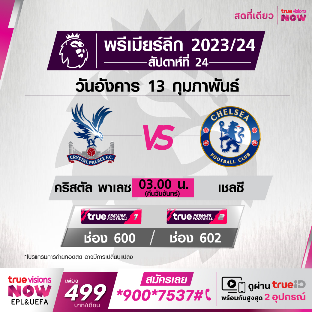 Crystal Palace vs Chelsea เวลา 03:00 - 05:00 ทางช่อง TPF 1(600) / TPF 2 (602)