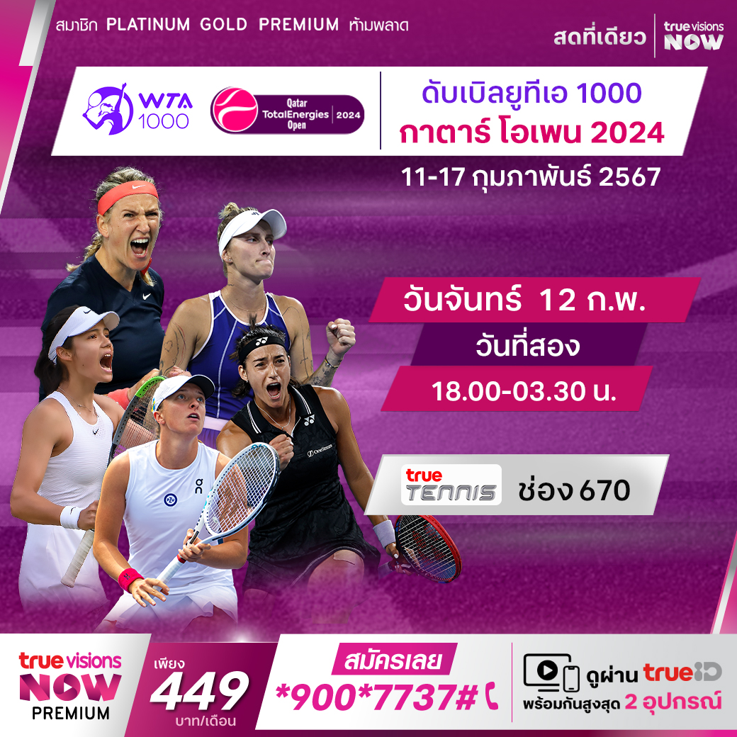 การแข่งขันเทนนิสหญิง ดับเบิ้ลยูทีเอ ทัวร์ ระดับ WTA 1000 รายการแรกของปี และการแข่งขันในภูมิภาคตะวันออกกลาง กับรายการ กาตาร์ โอเพ่น อิกา ซิออนเทค ยอดนักเทนนิสชาวโปแลนด์ หมายมั่นปั้นมือว่าจะคว้าแชมป์ หลังจากพลาดไปในการแข่งขันแกรนด์สแลมเมื่อต้นปี ชมสด ทางทรูวิชั่นส์ ที่เดียว