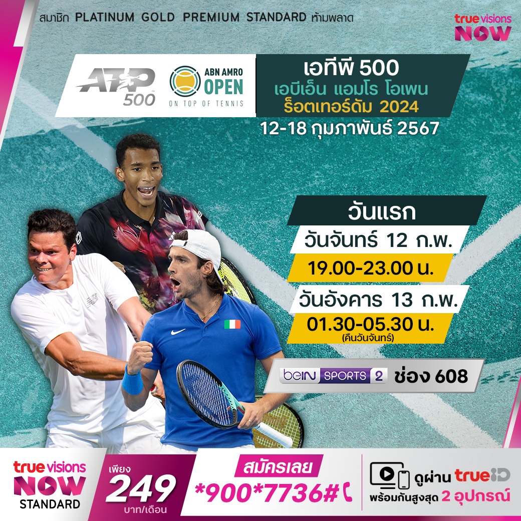 พบกับการแข่งขันเทนนิสเอทีพี ทัวร์ ระดับ ATP 500 รายการแรกของปีนี้ กับรายการ เอบีเอ็น แอมโร โอเพ่น เป็นการแข่งขันสนาม อินดอร์ ฮาร์ทคอร์ท ที่เมืองร็อตเตอร์ดัม ประเทศเนเธอร์แลนด์ นำโดย ยานนิค ซินเนอร์ แชมป์แกรนด์สแลมคนล่าสุด และ ดานิล เมดเวเดฟ ชมสด ทางทรูวิชั่นส์