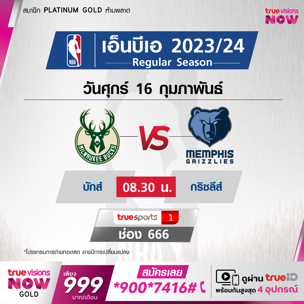 วันศุกร์ 16 ก.พ. Bucks Vs Grizzlies เวลา 08.30 ทางช่อง TS 1 (666)
